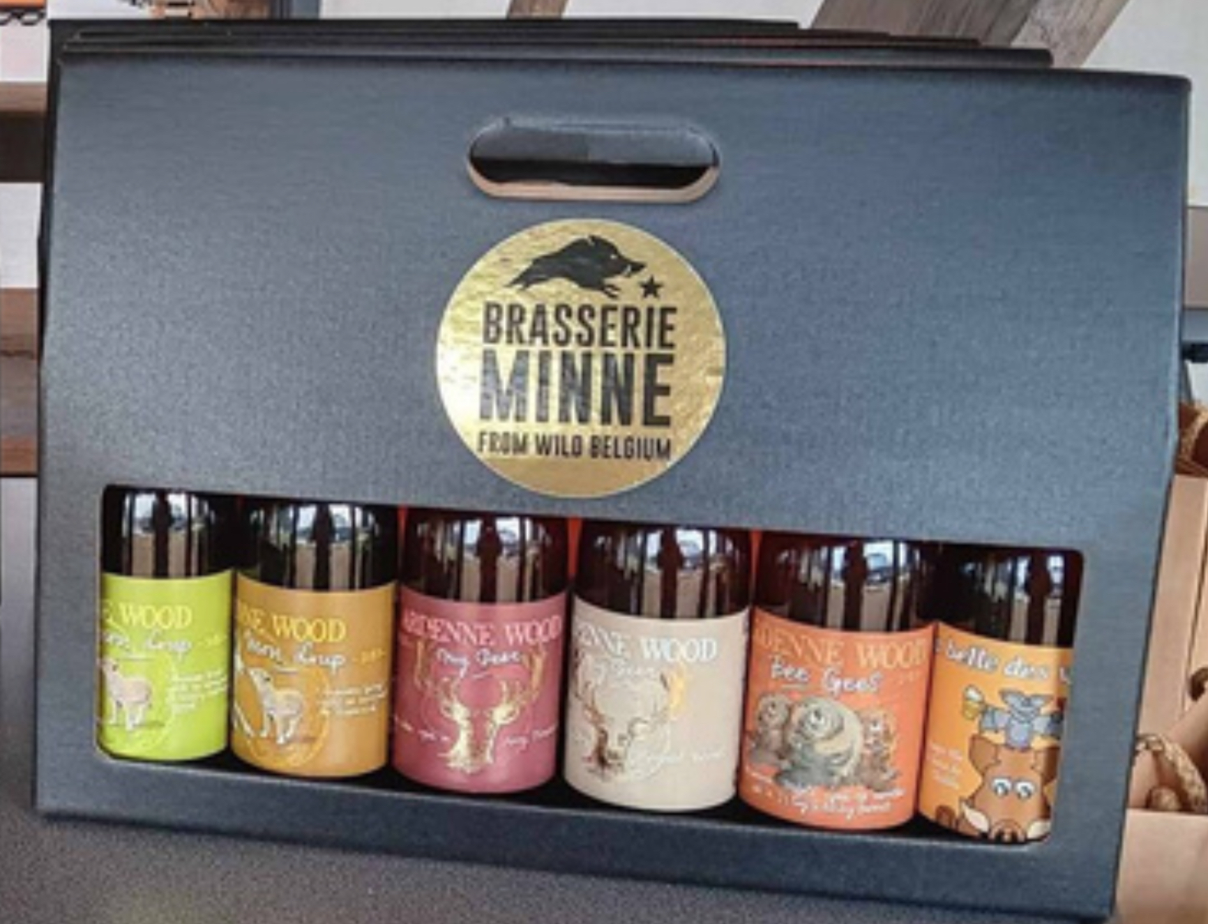 Dans ce panier, vous pourrez découvrir et déguster 6 bières barriquées surprises de la Brasserie Minne